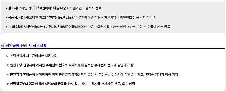: 온라인 신청서에 기재했던 ‘지역화폐’로 지급