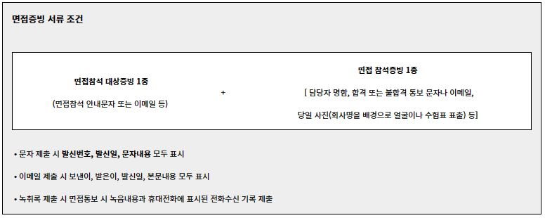 ☞ 대체서류는 면접사실을 소명(신청자 본인이 면접대상자였고, 면접 당일에 응시했다는 사실을 증빙) 할 수 있는 자료여야 함