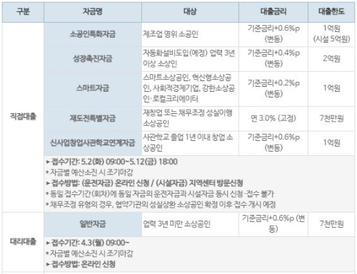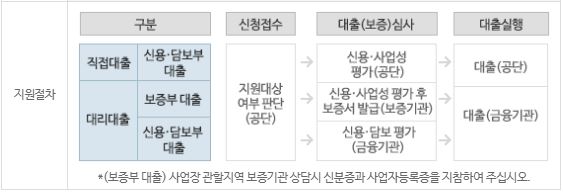 - 신사업 창업 사관 학교: 신사업 창업 사관 학교 졸업생 중 창업 소상공인 (직접 대출)