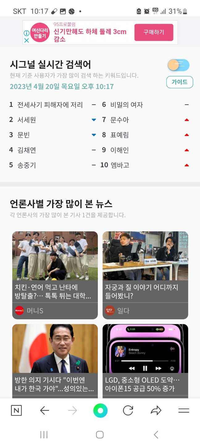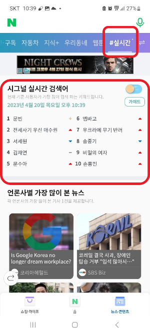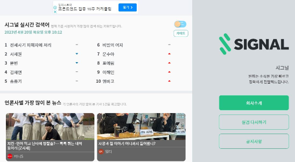 실시간 검색 순위를 확인하면서 대체할 것을 찾고 있다면 네이버에 시그널의 실시간 검색어 서비스가 대안이 될 수 있습니다. 네이버가 아닌 '시그널랩'이라는 회사가 만든 플랫폼으로 네이버 모바일 앱에서만 사용할 수 있습니다. 별도의 앱을 설치하지 않아도 누구나 무료로 이용할 수 있고 콘텐츠 테마 보드 중 하나로 추가할 수 있습니다. 지금부터 그 방법을 알아보겠습니다.