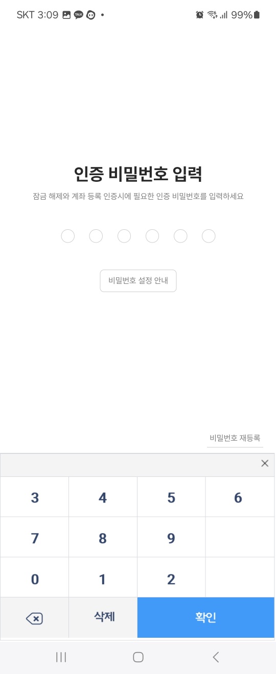 - 여섯 자리 비밀번호 설정