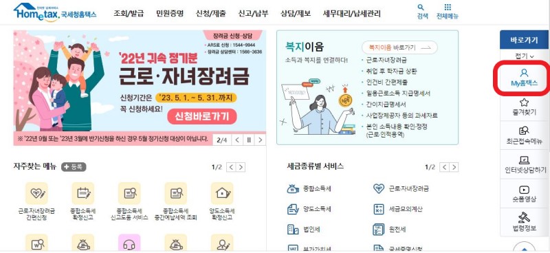 1.홈택스에 로그인하고 접속하면 상단에 My홈택스라는 메뉴가 있습니다.
