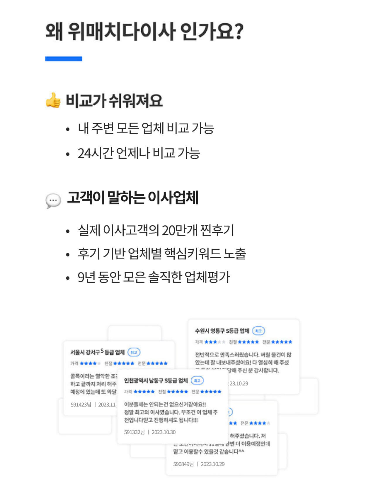 이처럼 고객 후기에서 확인할 수 있듯이, 위매치다이사는 단순한 가격 비교 이상의 만족감을 제공합니다.
