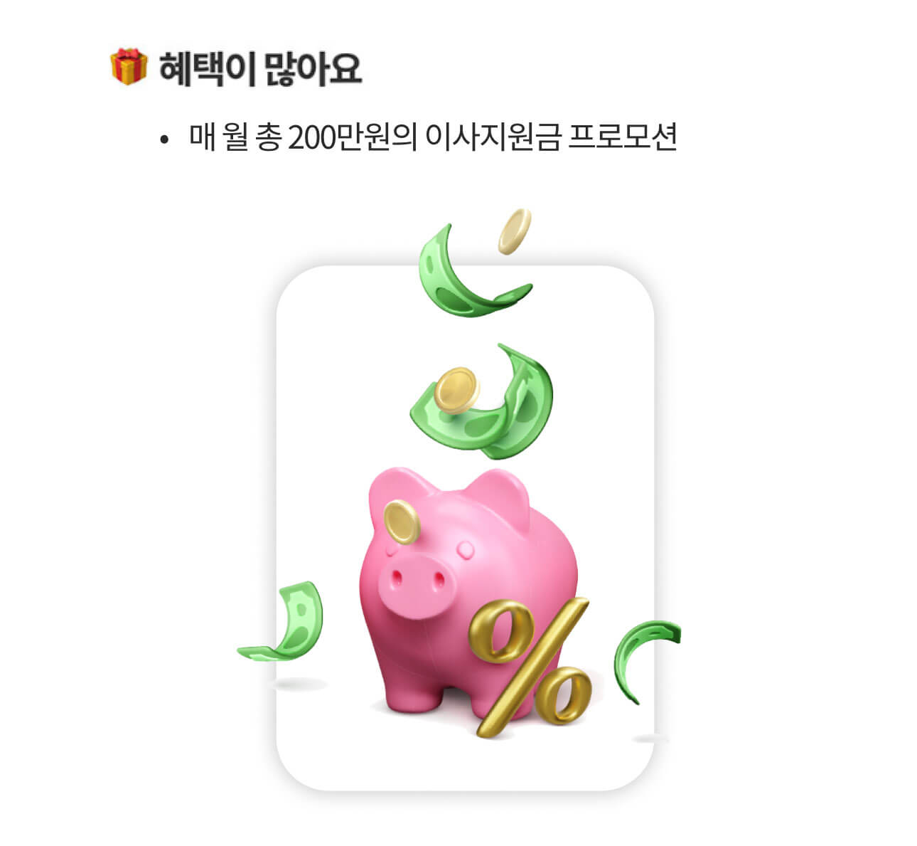 이사 비용이 부담스러우신가요? 위매치다이사는 고객의 부담을 줄이기 위해 매월 200만원 이사지원금 이벤트를 진행하고 있습니다. 이외에도 렌탈 및 통신 서비스와 관련된 최대 47만원의 이사지원금 프로모션도 제공하여, 이사 비용 절감에 큰 도움을 드리고 있습니다.