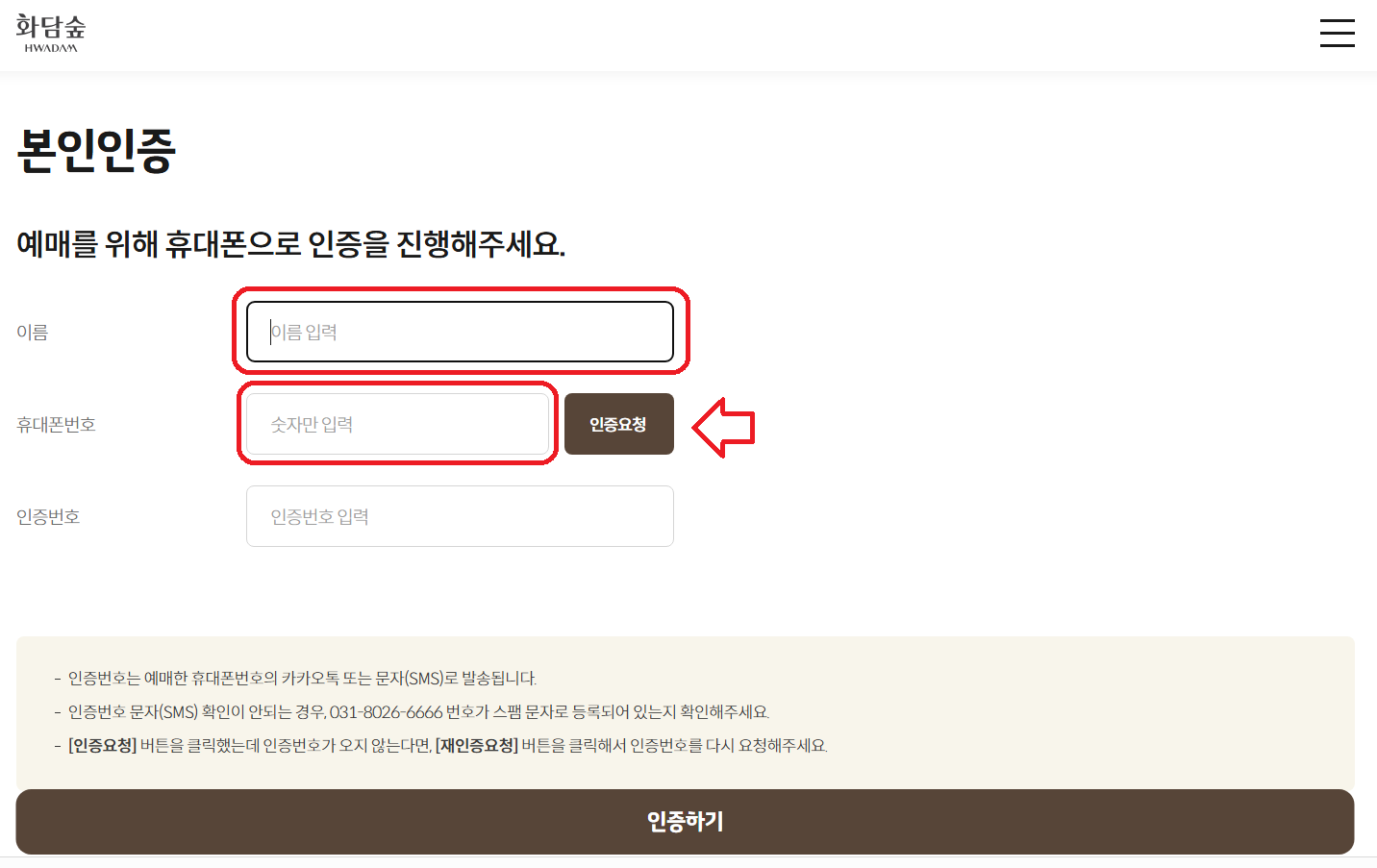4. 개인 정보 입력 : 이름, 전화번호, 인증번호를 입력하여 본인 인증을 진행합니다.