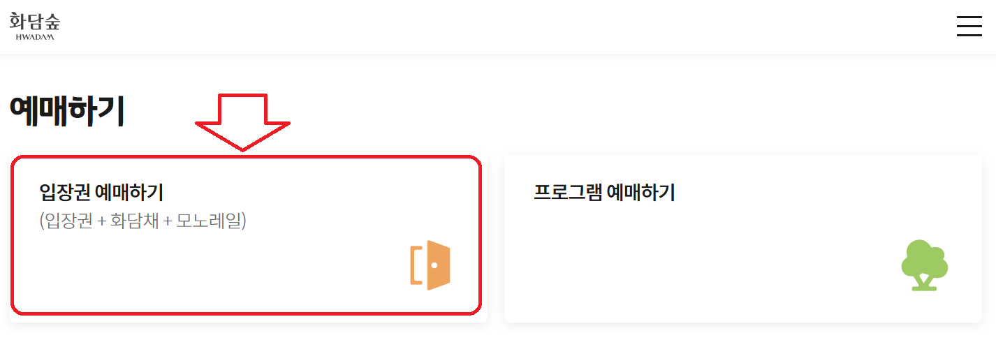 2. 입장권 예매 선택 : 홈페이지에서 '입장권 예매하기' 버튼을 클릭합니다.