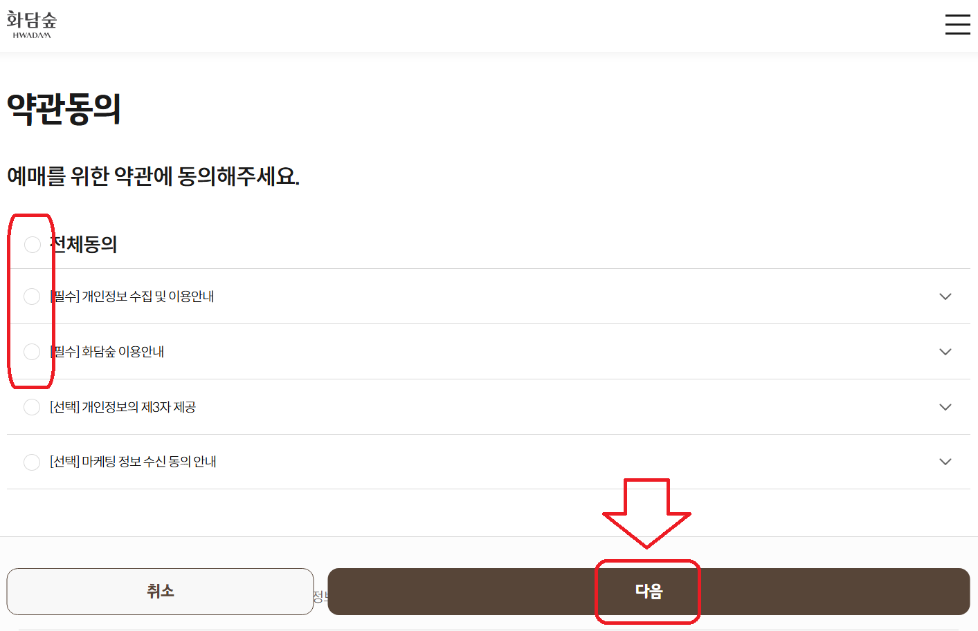 5. 약관 동의 : 약관에 동의한 후 다음 단계로 진행합니다.
